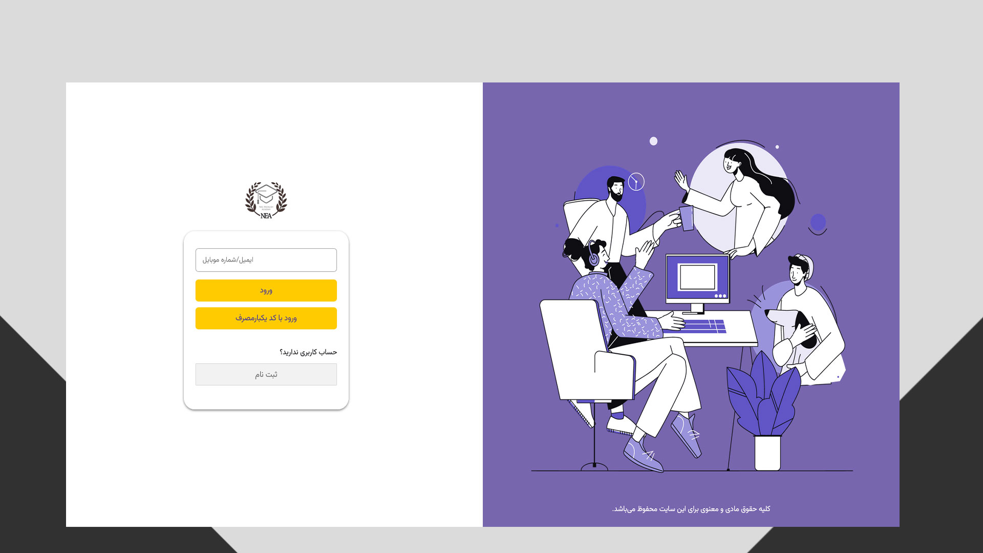 ناوبری اصلی سایت در بالای صفحه به وضوح دیده میشود. گزینههایی مانند “پروفایل کاربری من”، “ثبتنام” و “مجله آموزشی” در دسترس کاربران قرار گرفتهاند. این طراحی ساده و مینیمال کمک میکند که کاربران به راحتی مسیر خود را پیدا کنند و سریع به اطلاعات یا بخش مورد نظرشان دسترسی داشته باشند.