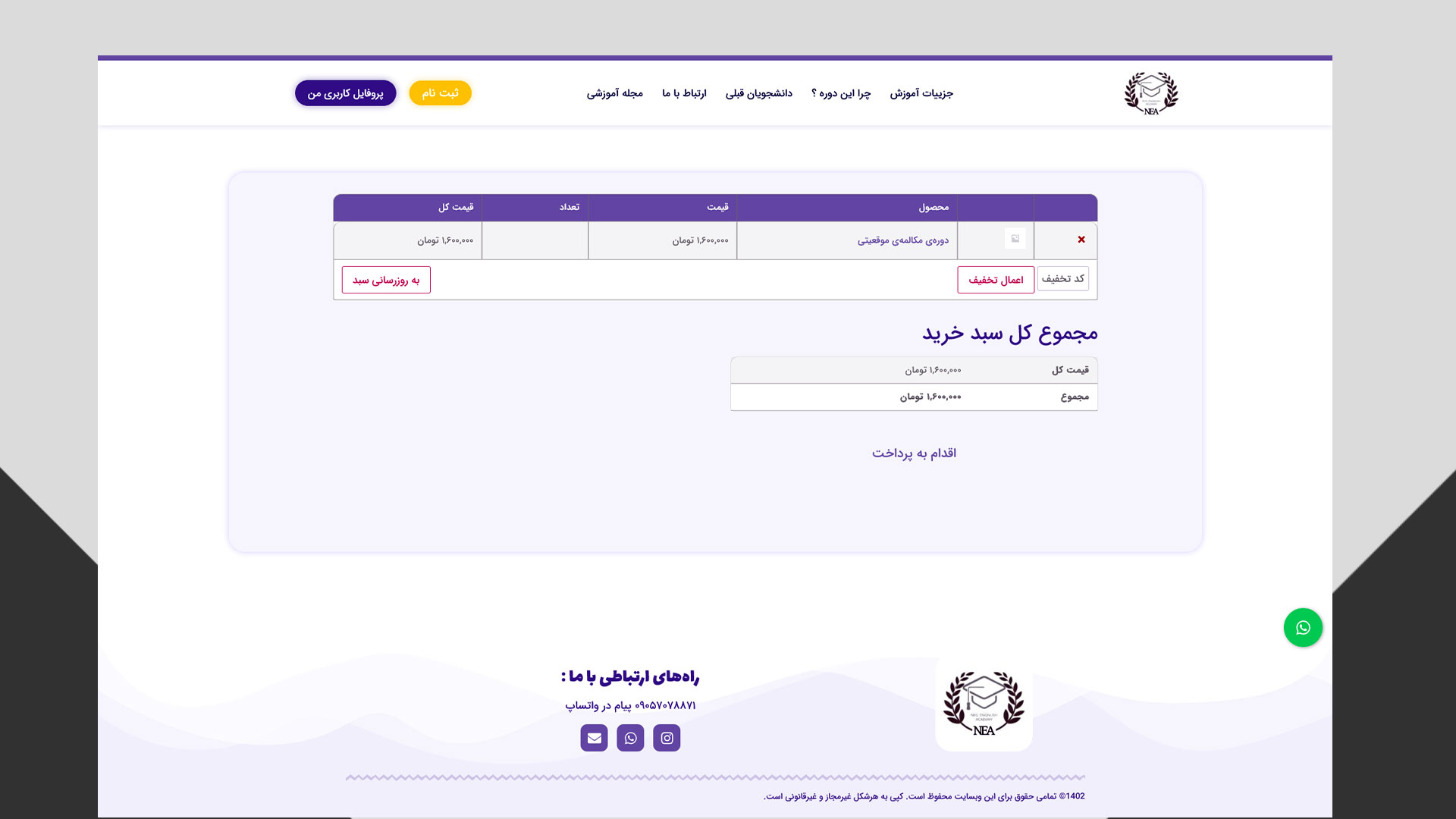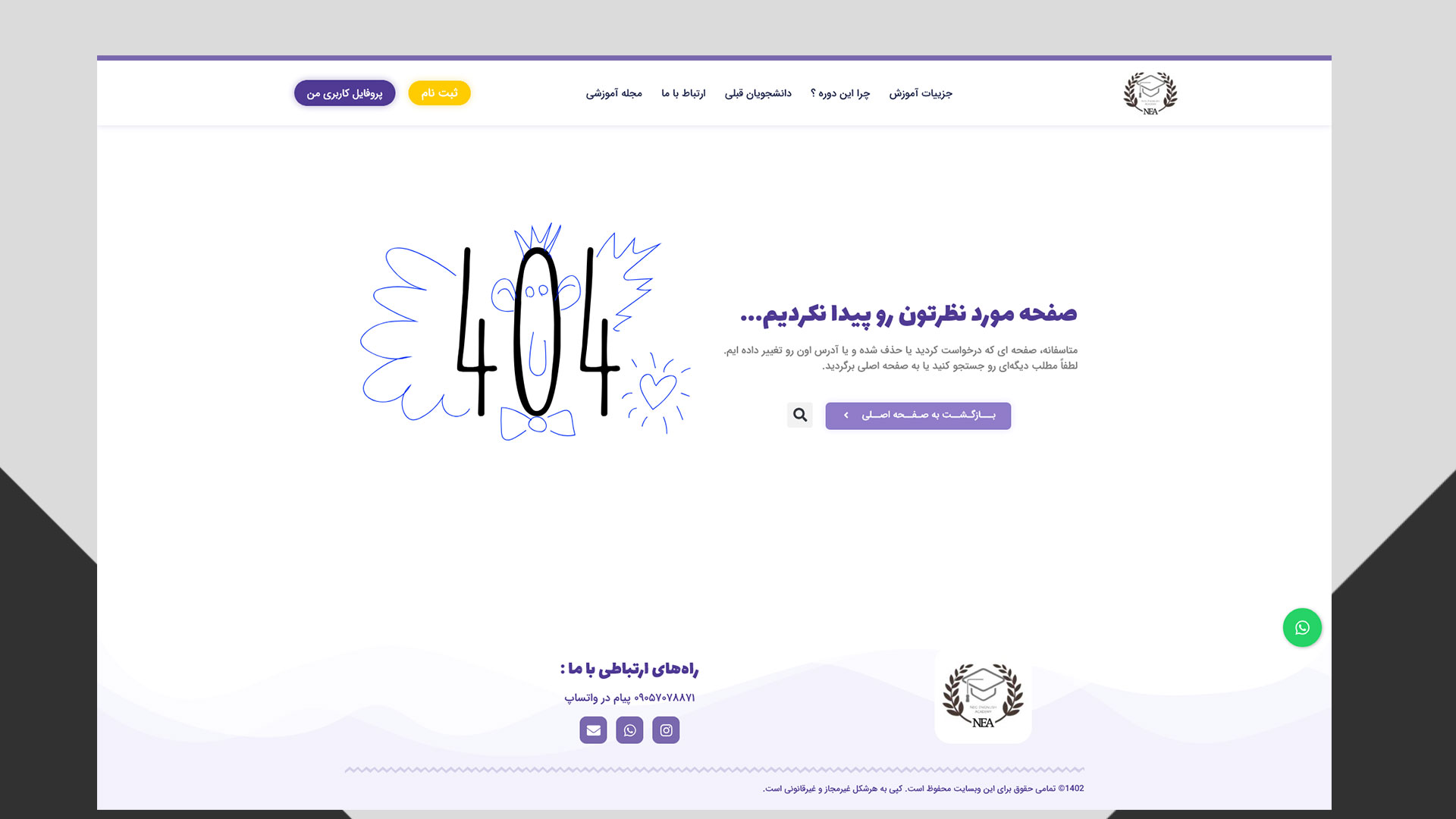 در پایین صفحه، راههای ارتباطی با پشتیبانی سایت بهطور واضح ذکر شده است. این بخش شامل شماره تماس و پیامرسان واتساپ است که دسترسی به پشتیبانی را برای کاربران آسان میکند و حس اعتماد بیشتری به آنها میدهد.